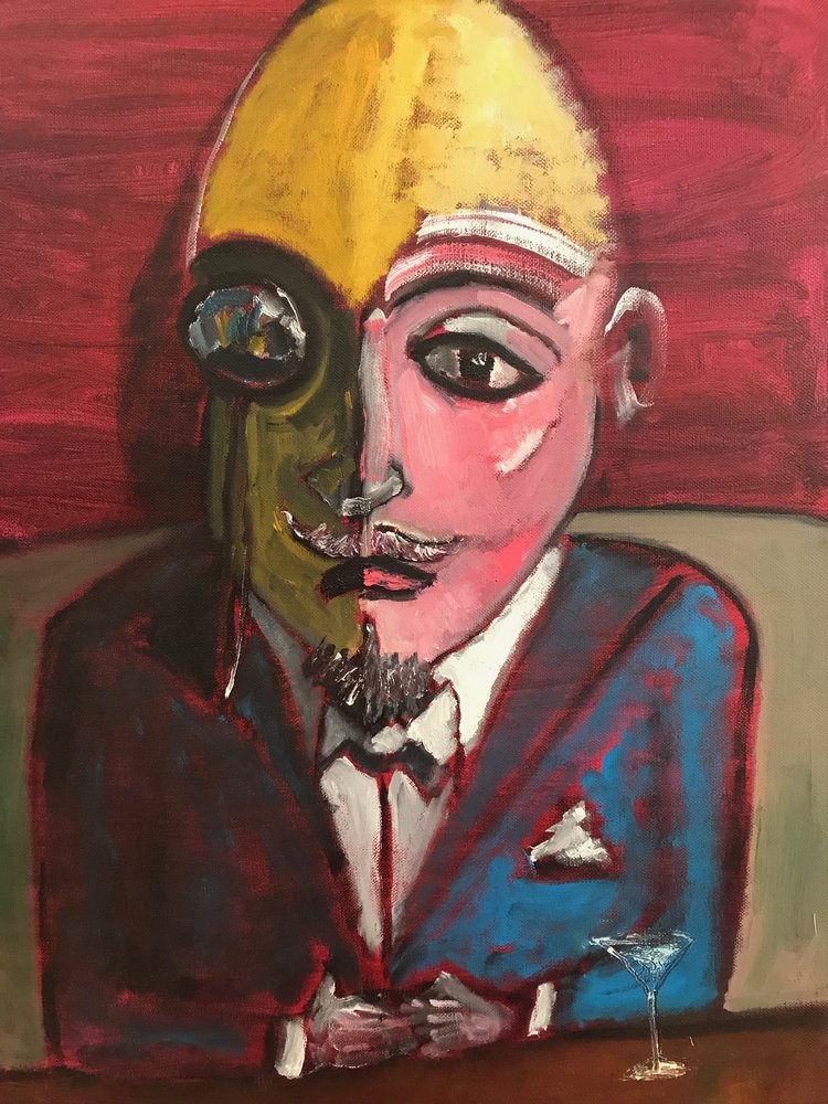 VC: I wondered if we could talk about this and you could explain your process of painting? Let’s start at the beginning. Where you get your first ideas to begin a work? Do these ideas come from memories of the past or are they dreams of reaching into the future? Or, are they about thoughts or events that happen throughout a day and you have created an additional twist. You have produced some intriguing paintings that are intellectually rich that are bathed in colors but are quite cerebral. I am curious to know more, as there seems to be a narrative that keeps the viewer guessing. In the interview with Shane Guffogg, he refers to them as your cast of characters. I think you must see and feel the world quite passionately?